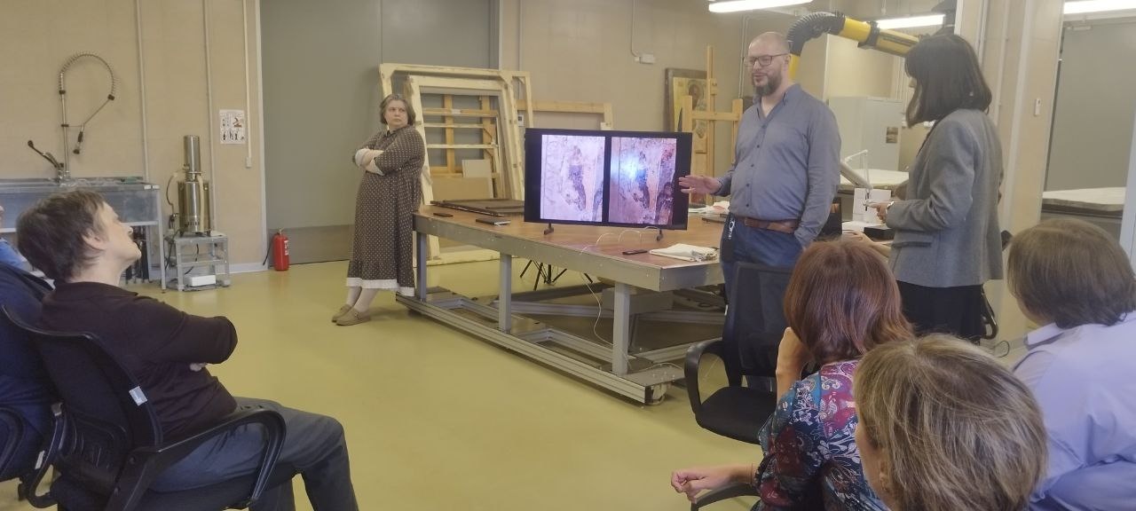 Помимо сотрудников Международного центра, в мероприятии приняли участие эксперты из Русского музея – заведующая отделом реставрации древнерусской живописи, Елена Васильевна Азарнина и заведующая отделом древнерусского искусства, Ирина Дмитриевна Соловьёва, а также представители Музейного агенства Ленинградской области – Леся Анатольевна Колесникова и Андрей Александрович Смирнов.