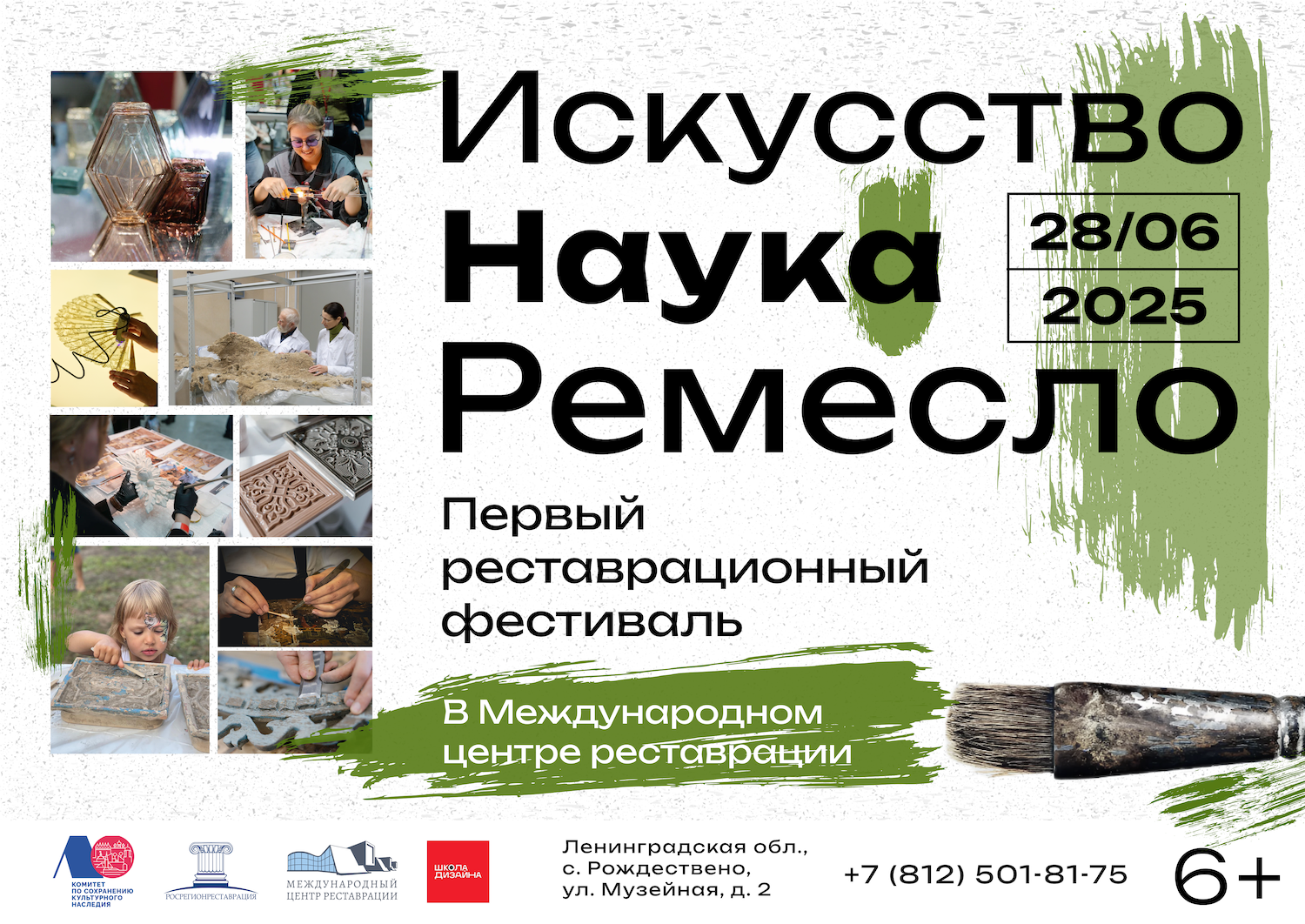 28 июня 2025 года на территории Международного центра реставрации (с. Рождествено, Музейная ул., д. 2, м. о. Гатчинский, Ленинградская обл.) пройдёт первый реставрационный фестиваль «Искусство. Наука. Ремесло», приуроченный ко Дню реставратора.